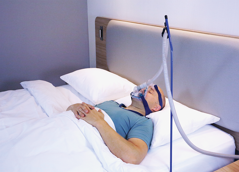 A lot of CPAP users will be familiar with the problem of disturbed sleep due to tension or pressure on the mask. The hose is in the way and gets twisted or pulls on the mask. The mask can also press into the face or slip when sleeping on one’s side.